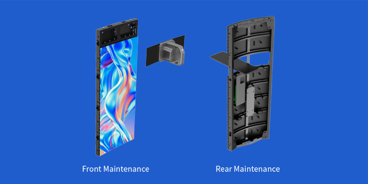 Receiving cards, power supplies, and modules can all be maintained from the front and the rear.