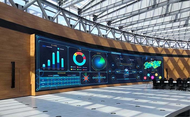With an area of 150㎡, The Suzhou Xiangcheng Integrated Command Center adapted LianTronics's P1.2 small-pitch led screen, which is equipped with an informational display system. This screen supports seamless splicing, multi-image deal and signal switching. It can realistically display the whole situation of the community, public security, urban ecology, etc.