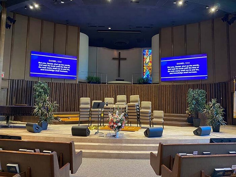 Two Esdlumen's small-pitch LED screens had upgraded the display equipment of an Arizona church in the USA. These two LED screens were created with the Red-Dot-awarding VE Series fine-pitch LED displays, which features super-sharp and ultra-smooth demonstration in broadcasting to enhance the worship experience of all congregation.