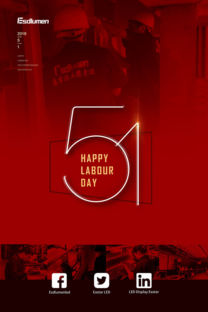 The International Labour Day is coming, all the workers of our Shenzhen factory & office will be on holiday from May 1st,2019 to May 4th. If you want to purchase our products or have any other problems, you can send email to sale@esdled.com. We will handle after May 4th, 2019.