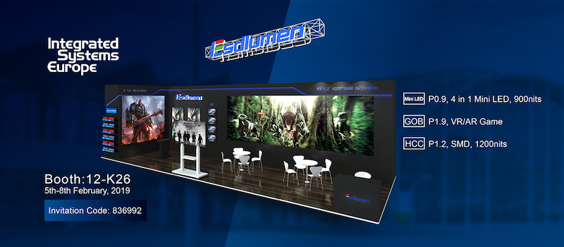 On behalf of Shenzhen Esdlumen Electronic Co., Ltd. We are pleased to extend you a cordial invitation to our VIP section at the ISE Fair on RAI Amsterdam, on 5-8 February. Aimed to deepen our business relationships. Esdlumen ISE invitation code is 836992, the address is 12-K26 Booth.