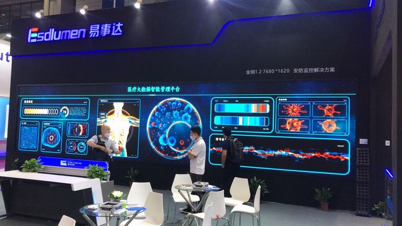 The security monitoring is one of the main applications of indoor fixed LED display. The security monitoring screen of this exhibition is made of 96 Esdlumen's KingKong P1.2 cabinets. With seamless splicing and the 4K resolution, this large screen can clearly display all data, graphics, and other indexes, full of technology! In addition, the product adopts the redundant power and signal design; it supports 7x24-hour real-time monitoring to ensure the safe and stable operation of the screen during the entire monitoring process.