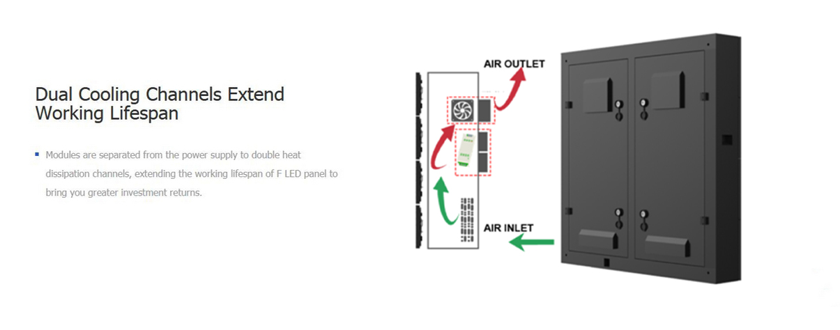 Modules are separated from the power supply to double heat dissipation channels, extending the working lifespan of F LED panel to bring you greater investment returns.