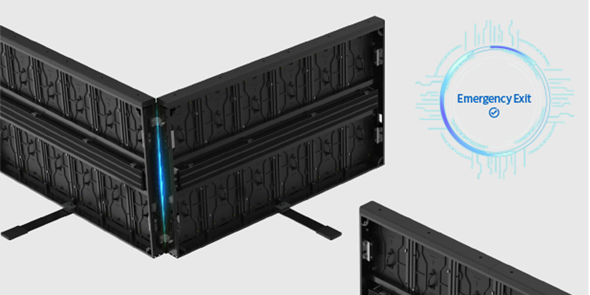 Designed with an emergency door function, cabinets can be unlocked to open an escape path without trampling on LED displays.