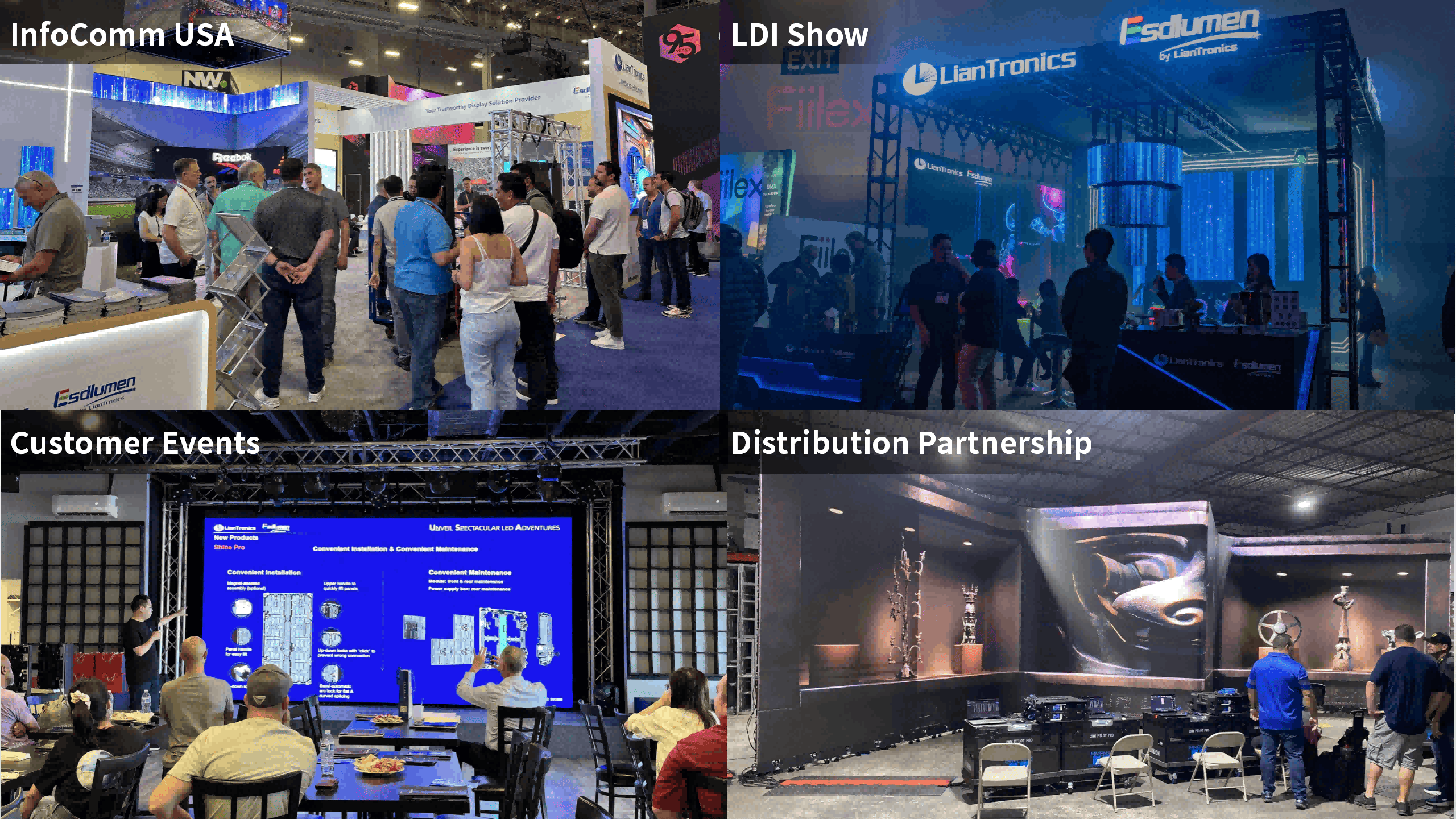 This year, LianTronics & Esdlumen deepened its global footprint by opening its Japanese subsidiary and hosting multiple customer events worldwide, showcasing its innovative solutions and building closer connections with international clients. Strengthening its localization network, LianTronics & Esdlumen established a new distribution partnership to optimize supply chain efficiency and service delivery. Additionally, participation in leading industry exhibitions—such as ISE in Spain, Saudi Light and Sound, InfoComm & LDI in the U.S., etc.—solidified its reputation as a global leader in LED display technology.