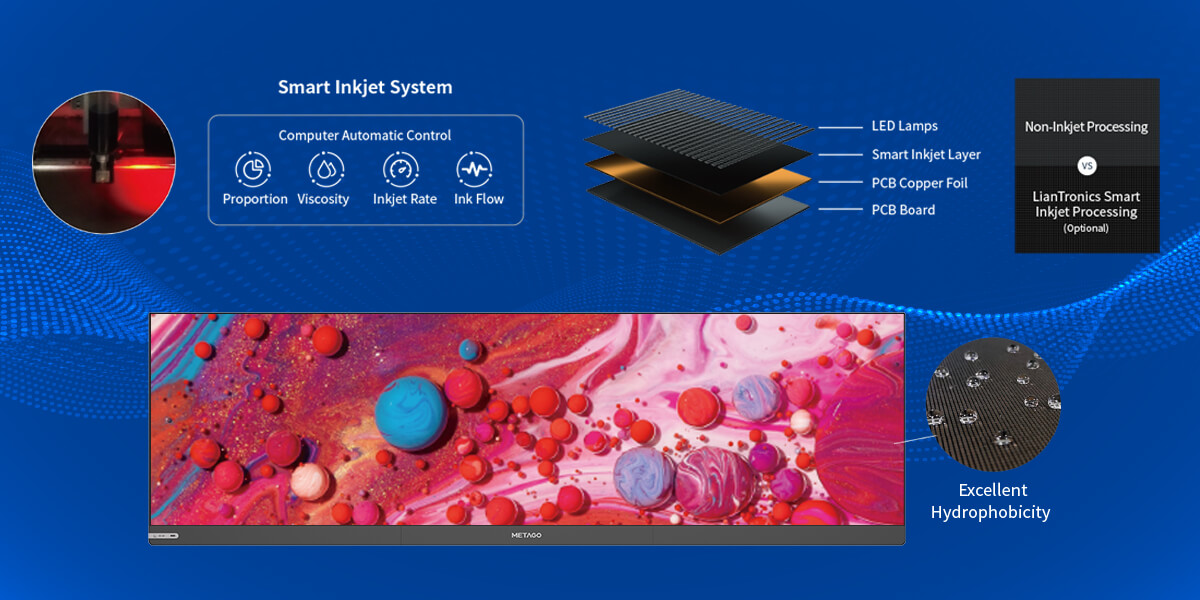 Patented Smart lnkjet 3.0 Craftsmanship greatly improves the contrast of the entire screen to produce unrivalled outstanding visuals. Unique Nano-Coating Technology grants macromolecule nanopolymer protective for extra safeguard against moisture, dust, water, etc.