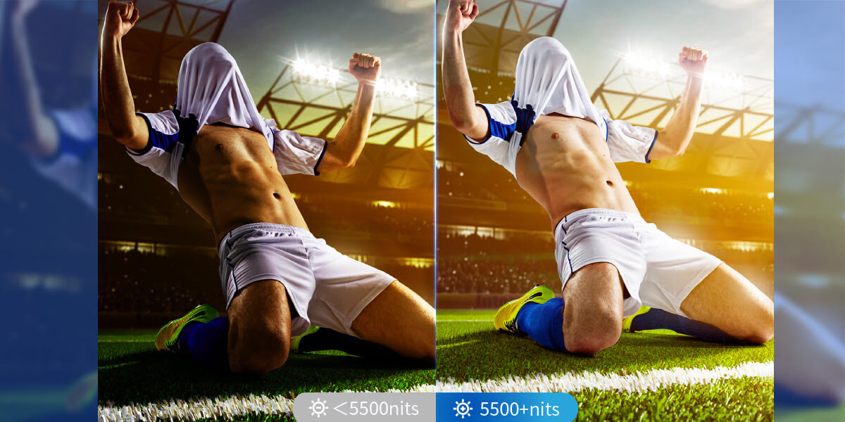 5500nits brightness allows viewers to see clearly outdoors even in the strong direct sun while ensuring an astonishing and fabulous display.