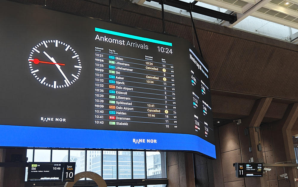 The Biggest Non-Commercial LED Wall in Europe! Esdlumen's Indoor LED Screen Upgrades Information System in the Oslo Central Station