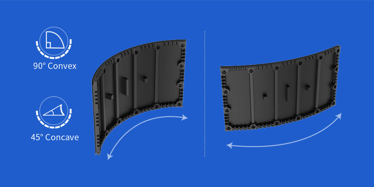 While maintaining a smooth and delicate display, VA MIN Series can be spliced into 45° concave and 90° convex shapes, expanding the possibilities for various creative shapes like naked-eye 3D curved LED Display.