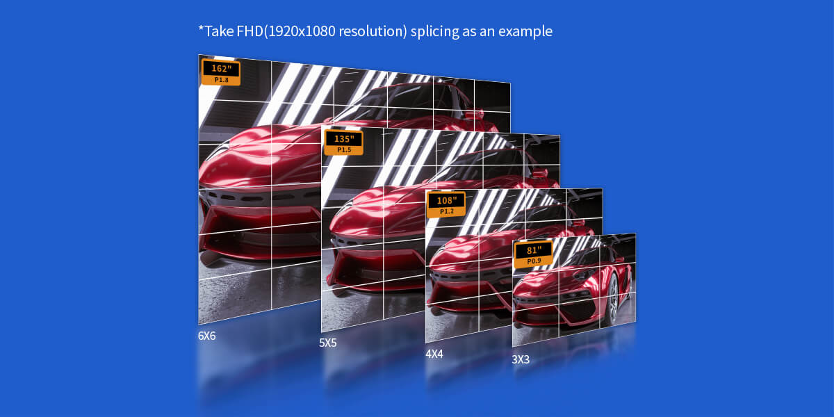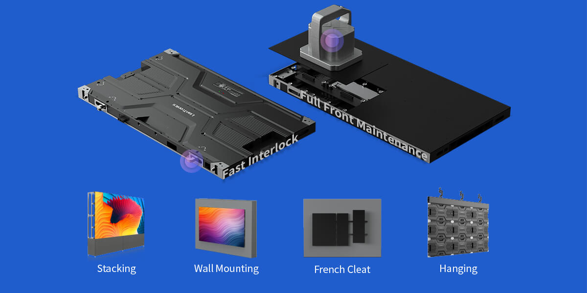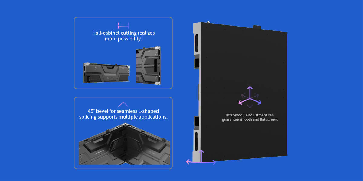 VAⅢ Series enables half-cabinet cutting, 45° bevel for seamless L-shaped splicing & curved splicing flexibly. Unique module-level adjustment technology guarantees high flatness to achieve superior display.
