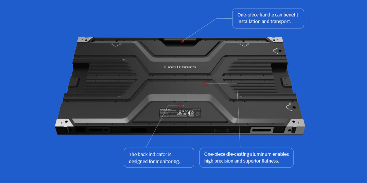 16:9 golden ratio brilliantly matches mainstream HD/4K/8K videos while maintaining pixel-to-pixel broadcasting; The 27-inch single cabinet can directly replace LCD display with distortion-free images.
