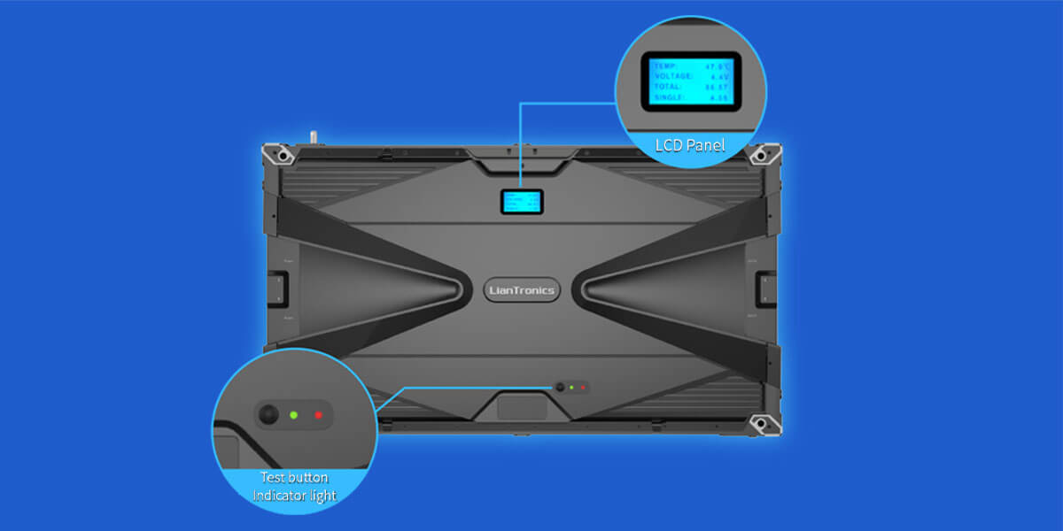Test button, indicator light and optional smart module function help smart monitoring and calibration of the LED display. Extra LCD panel is in option to bring instant monitoring data.